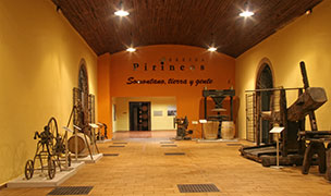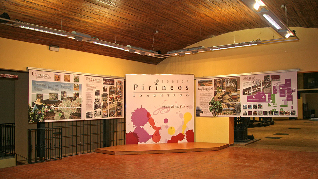 Perteneciente a la Denominación del Somontano, la Bodega Pirineos es una de las que cuenta con más años de funcionamiento. Muy implicada de manera activa con el cuidado ecológico del medio ambiente desarrolla una serie de actuaciones de sostenibilidad con un gran número de propietarios particulares que siguen cultivando sus viñas. Estos importantes valores son los que se plasman en este Centro de Interpretación desarrollado en la visita a la bodega.