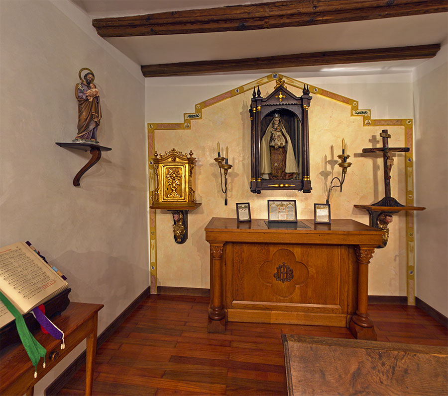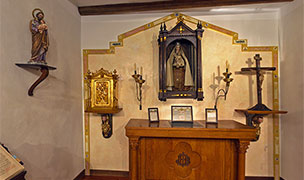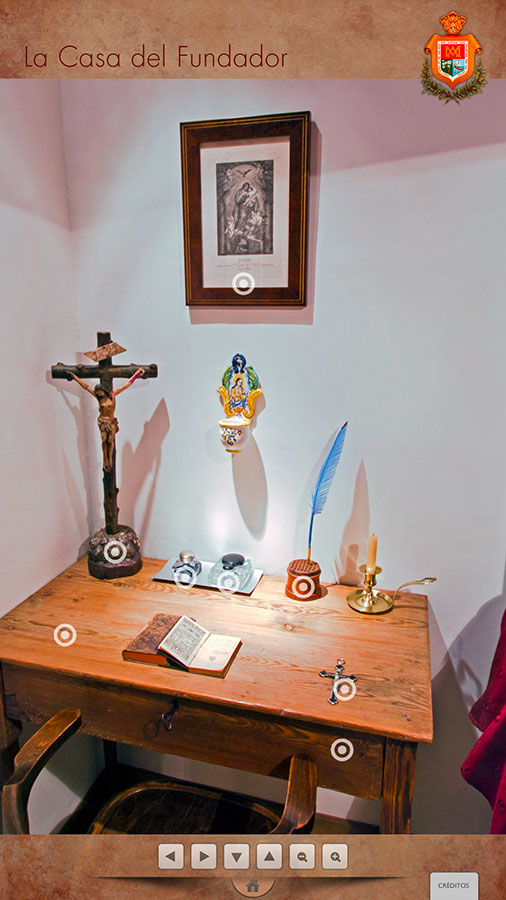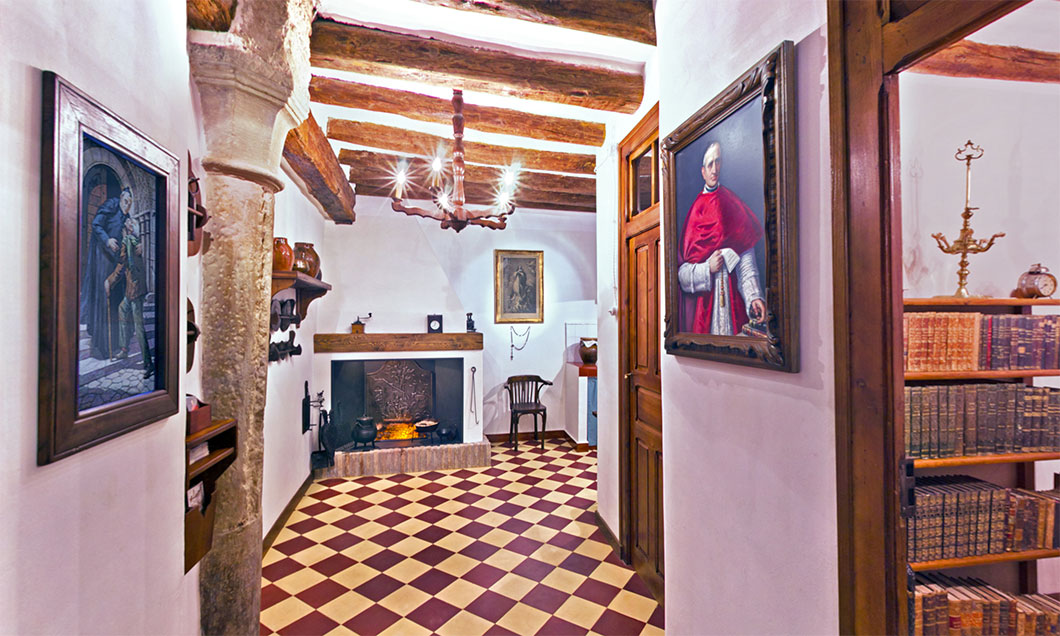 Hemos recreado su despacho, el oratorio y las distintas dependencias que conformaban su casa habitual, donde las piezas expuestas y el mobiliario nos trasladan en el tiempo.