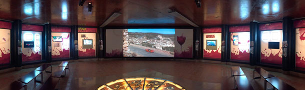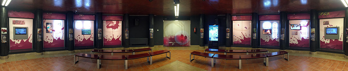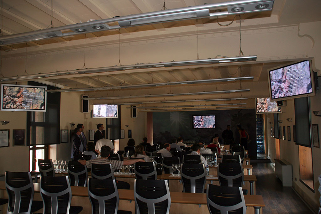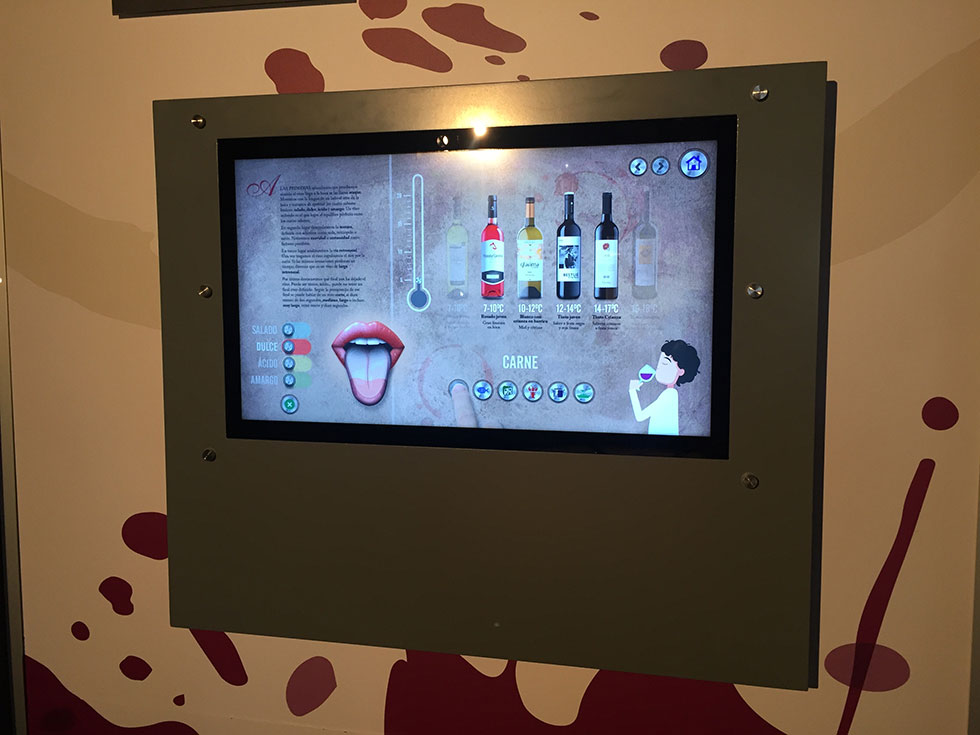El sistema de control cambia las condiciones de la sala para permitir ahora interactuar a través de un juego de descubrimiento de aromas, conoceremos las rutas del vino, o los secretos de la cata a través de diferentes interactivos sobre pantalla táctil.