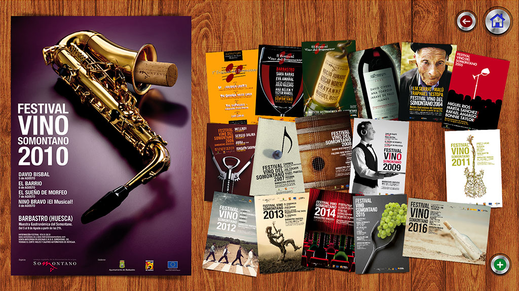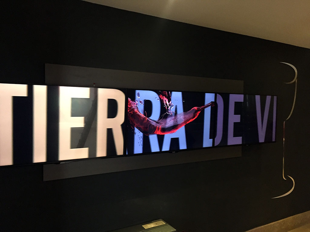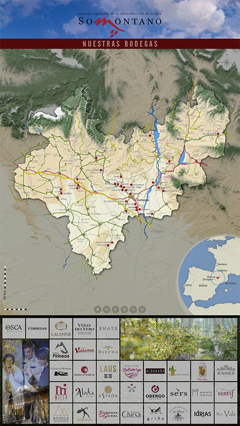 Solo entrar en el Espacio del Vino, nos da la bienvenida el nuevo Video Wall que nos invita a adentrarnos en una sala circular donde se proyecta un atractivo audiovisual; a través de sus bellas y seductoras imágenes, se da a conocer al turista las diversas posibilidades que ofrece esta tierra vitivinícola, garantizando el disfrute de su estancia: recorridos por las bodegas, alojamientos, restaurantes y parajes que hacen del Somontano un destino turístico de primer orden.