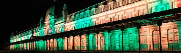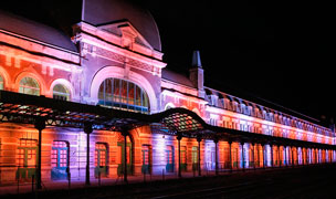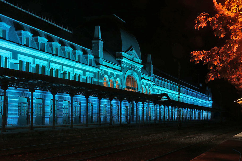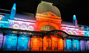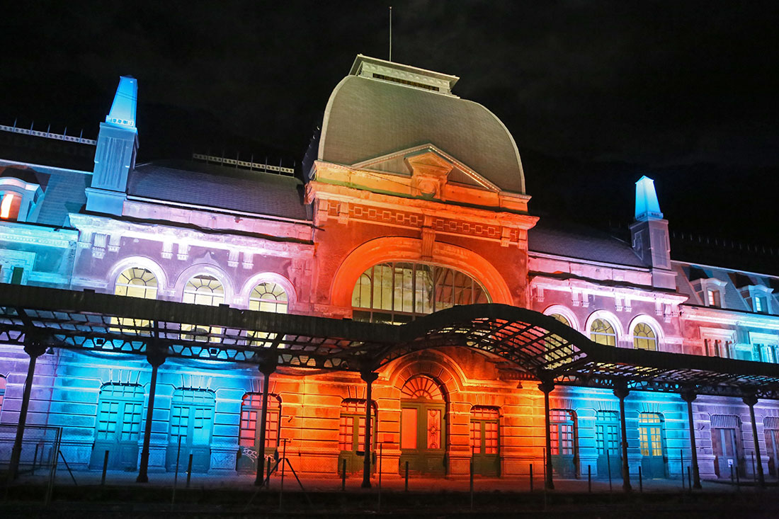Para los viernes, sábados y domingos, hemos creado dos espectáculos audiovisuales donde los efectos de colores se mueven al ritmo de la música, la proyección de imágenes nos permiten recrear la llegada del primer tren, los efectos de sonido nos recuerdan la guerra y el fatal incendio… historia que no podemos dejar de ver porque ahora la estación luce como nunca.