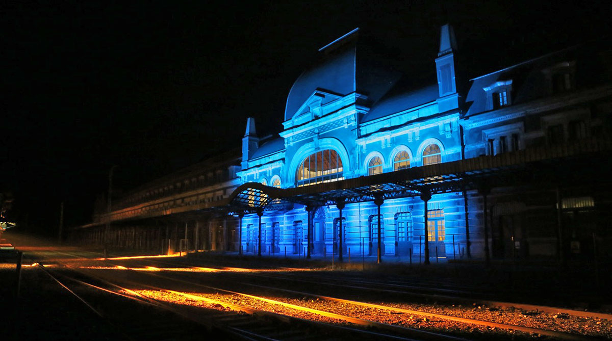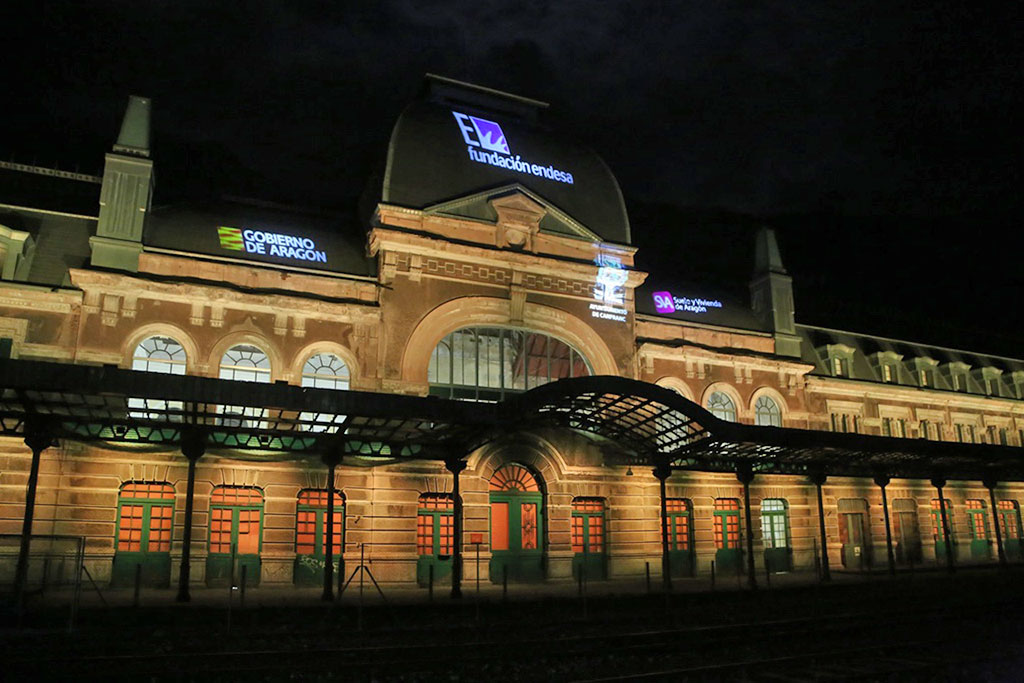 La estación internacional de Canfranc ya brilla con luz propia en las noches de Canfranc gracias a su nueva iluminación y a su espectáculo audiovisual, un proyecto creado e impulsado por el Gobierno de Aragón a través de la sociedad Suelo y Vivienda de Aragón, la Fundación Endesa y el ayuntamiento de Canfranc.
