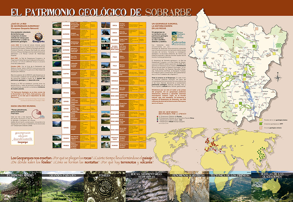 En septiembre de 2006 la UNESCO cataloga el Parque Geológico de los Pirineos. En este centro, localizado en la Torre Sudeste del Castillo de Aínsa, de la mano del patrimonio geológico de Sobrarbe podemos seguir la historia de la vida en esta comarca a lo largo de 550 millones de años.
