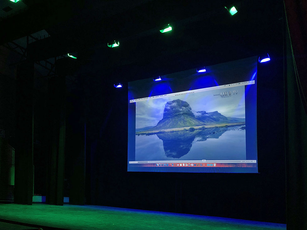 Las actuaciones realizadas incluyen el vestido del escenario instalando patas y bambalinas, refuerzos de estructuras, potente sistema de sonido, iluminación escénica con juego de luces y colores y sistema de videoproyección.