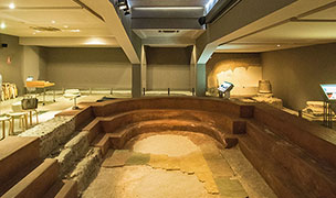 Cuando el audiovisual principal finaliza y pueden contemplarse todos los restos arqueológicos un monitor reproduce una recreación en 3D de cómo eran originalmente las termas.
