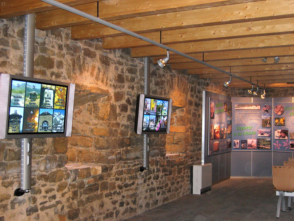 Los sistemas audiovisuales complementan el diseño realizado tanto de la distribución del espacio como de los paneles informativos, mapa turístico comarcal, iluminación y mobiliario.