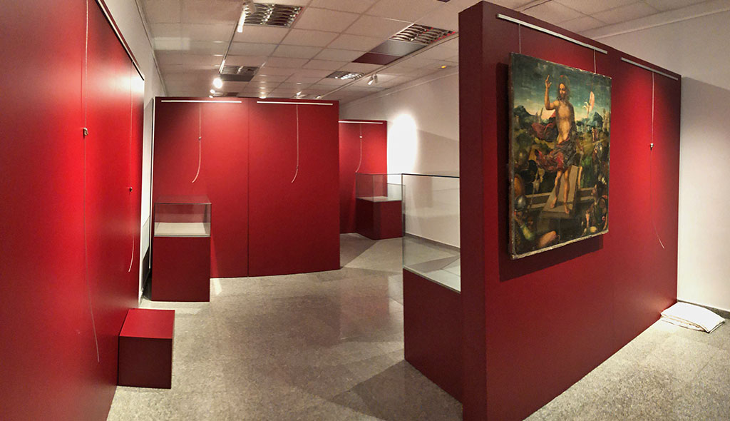 Fotoprisma ha incluído en este espacio cultural el equipamiento de la nueva sala exposiciones temporales. Murales separadores desmontables en pocos minutos pueden adaptar la sala a las necesidades de cada exposición. Un nuevo sistema de iluminación, varias vitrinas campana y exporrailes completan el equipamiento.